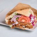 Toastad Pita, Sallad, lök, rödkål, tomat, vitlöksås och chilidressing. Välj mellan: nöt, kyckling eller mix.
