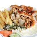 Gott kebabkött men det var inte en enda grönsak i kebabtallriken, blev besviken på det