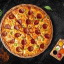 Tomatsås, ost, kebabköt, pepperonikorv, marinared kyckling och marinared biff