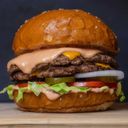 En tallrik med krispiga pommes frites och saftig hamburgare, ofta med olika tillbehör.