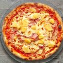 Pizza with ham and pineapple.