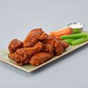 Chicken wings served with celery and blue cheese dressing. Choose the sauce in the next step.