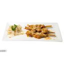 Curry marinated chicken tenderloin on skewers with house peanut sauce.