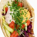 Served with garlic cream, sour mango sauce, lettuce, tomato, cucumber, pickled red cabbage and parsley.