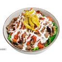 Served with garlic cream, sour mango sauce, tahini sauce, pesto, pomegranate syrup, falafel, fries, salad, tomato, cucumber, pickled red cabbage and red onion.