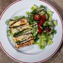 Serveras med sallad.