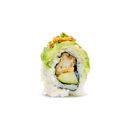 10 makibitar. För den som är ute efter en extra smakupplevelse och vill spetsa till det. Tempuraräka och krispig gurka - toppad med avokado, teriyakisås och kimchisesamfrön. Läckert och gott! Serveras med teriayakisås, inlagd ingefära, wasabi och sojasås. 1,1kg CO2e.