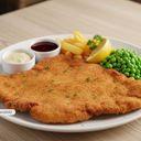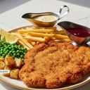 Panerad torskfilé, remouladsås, ärtor, pommes eller hemmagjort potatismos