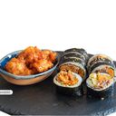 Fried chicken, cucumber and avocado topped with chili mayonnaise, fried panko & roasted onion