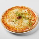 Pizza med tomatsås, ost och mozzarella. Toppas med oregano.