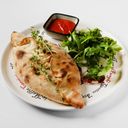 Pizza med tomatsås, ost, champinjoner, oliver, kronärtskocka, grillad paprika och mozzarella. Toppas med oregano.
