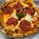 Mozzarella Fior di latte, San Marzano tomatsås, stark salami och oliver