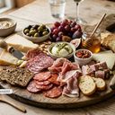 Serveras med mozzarella, ruccola, stark salami, rödlök, oliver, tomat, olivolja och parmesan
