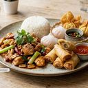 0Combo : One hot dish, one bowl of rice, plus one fried wonton, two fried spring rolls, and two fried dumplings.