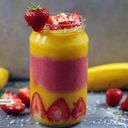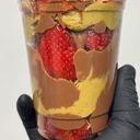 En fräsch dessert med jordgubbar, grädde och en krispig botten, perfekt för varma dagar.