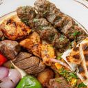 An exclusive combination of a chicken skewer, a shish kebab skewer and a lamb skewer. Served with rice and fries