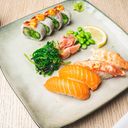 Served with salmon, crabstick, avocado and cucumber.