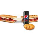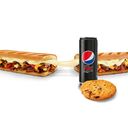 En varm och pressad SubMelt® med massor av smält ost inklusive 0,33 l burk och Cookie/Chips/Donut Dots/Waffle Fries