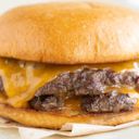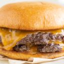 Saftig hamburgare med två biffar, ost, sallad och smakrik sås mellan bröd.