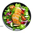 Serveras med kycklingfilé (250 g), grillad tomat, paprika, persilja, grönsallad, tzatziki, citron och pommes eller klyftpotatis