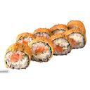 Tempura fried shrimp, avocado, nori. Topped with seared salmon, tobiko, chiliailo and teriyaki sauce