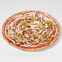 Pizza med vitlökssås, kebabkött (nöt) och feferoni.