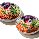 Välj mellan varmt långkokt nötkött eller varma vegobites för vegansk variant. Innehåll; Varma glasnudlar, gurka, ingefärspicklad morot, rödkål, picklad röd chili, salladslök, böngroddar, koriander, rostade jordnötter & jordnöt-limedressing. Serveras från 10.00. Koldioxidavtryck: 2,60 kg C02e / 0,31 kg C02e. Allergener kyckling: Senap, sesam, soja, jordnöt. Allergener vegobites: Sesam, soja, jordnöt. Allergener nötkött: Sesam, soja, jordnöt. Gluten- och mjölkfri.