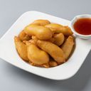 Friterade bananer är en söt och krispig efterrätt, ofta serverad med glass eller sås.