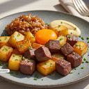 Jag gillar inte skal på potatis, speciellt inte när dom serveras så. Och jag tycker att potatisen, åtminstone i en biff Rydberg ska vara fyrkantiga och frasiga och utan skal.