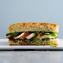 Ekologisk ciabatta fylld med svensk skivad kycklingfilé, krispigt bacon, tomat, ruccola och senaps- och honungsmajonnäs. Serveras grillad.
