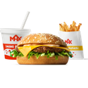 Burger made with beef, melted cheddar cheese, iceberg lettuce, original dressing, and sesame seed bun. Served with drink and side. Plus a surprise! 1.7 kg CO2e