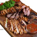 Chicken skewers, lamb skewers, lamb mince and sujuk. Served with fried potatoes.