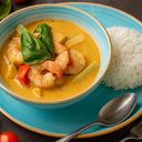 Mae thai curry, baseras på rödcurry, kokosmjölk, blandade grönsaker, lite mildare än rödcurry. Serveras med ris