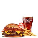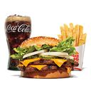 Vad sägs om en grillad burgare med dubbla kött - 226 g närmare bestämt? 4 skivor ost, majonnäs och massa bacon! Serveras med valfri dryck och tillbehör.
