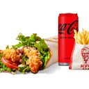 Crispy news with a kebab twist! Choose between original- or zinger fillet. Includes both red- and white kebab sauce, lettuce, red onion and tomatoes. Served in a roasted pita bread. The Combo Meal includes one medium fries, one medium drink and 3 falafels.