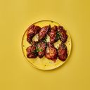 8 st, 12 st eller 16 st kycklingvingar glaserade i koreansk BBQ-sås, toppad med sesamfrön och koriander.