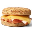 Vetebagel från vårt eget bageri toppad med salt och peppar. Fylld med färskost, kyckling och BBQ sås