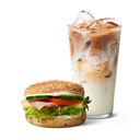 Espresso blandat med len vaniljsyrup, kall mjölk och is.