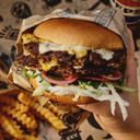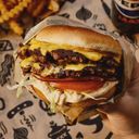 Tämligen liten ”dubbelburgare”. Cheesfrisen var smöriga pommes med krydda 🙈🤷🏼♂️. Nja. Förvänrade mig åtminstone att bli mätt. Men ICKE!