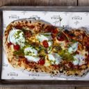 Serveras med buffelmozzarella, tomat, avokado och pesto.
