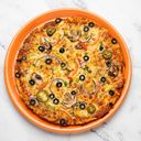 Osttopping, marinerad kyckling tikka, jalapeño, lök, oliver.