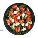 Sallad med salladsost, oliver, paprika, lök och peperoni