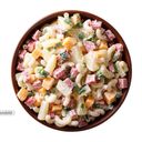 Sallad med kyckling, räkor, ananas, paprika och citron
