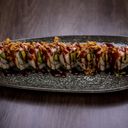 Friterad räkor, gurka, avokado,majonnäs och teriyakisås.