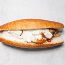 Serveras med friterad kyckling, söt, starksås, coleslaw, sweet onion, saltgurka och majo
