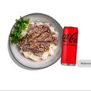 Yakiniku kött med gurka, avokado, gräslök och unagisås + dryck.