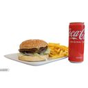 Serveras med pommes, valfri sås och aromsmör + dryck.