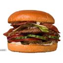 Saftig hamburgare med krispig bacon, ost, sallad och smakrik sås i mjukt bröd.