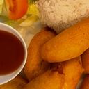 8st vegetariska vårrullar serveras med sweetchilisås