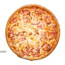 Pizza med pepperoni, bacon, salami, köttfärssås, tomatsås och ost. Stark.